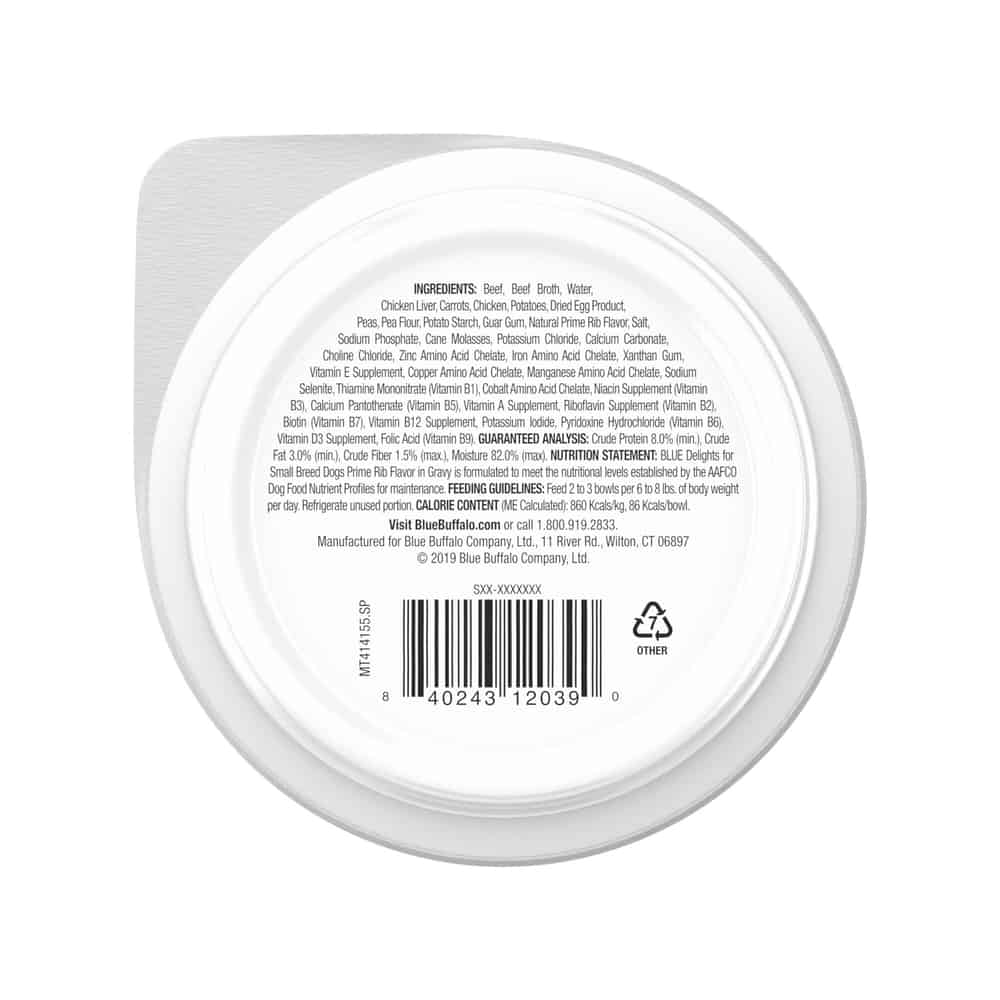 Blue Buffalo BLUE Delights Adult Prime Rib Flavor in Hearty Gravy Small Breed Wet Dog Food Directions: