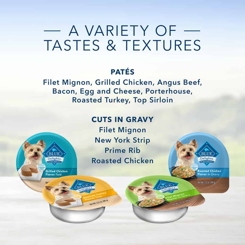 BLUE Delights are scrumptious and nutritious single-serving entrées ideal for small dogs with big appetites.