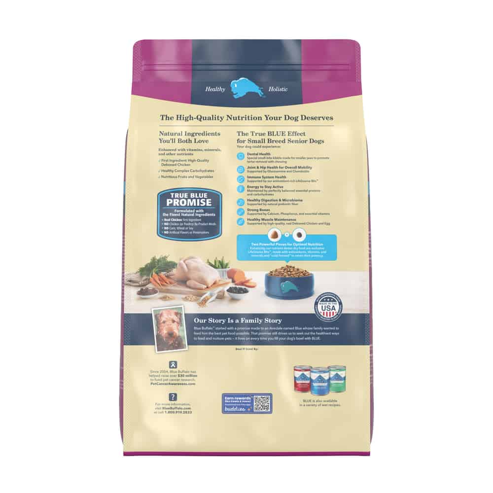 Formulated for the health and well-being of small breed senior dogs, plus glucosamine and chondroitin to support mobility in small, older dogs so they can maintain an active life. BLUE Life Protection Formula with LifeSource Bits will provide your dog with superior nutrition plus a unique nutrient and antioxidant package specifically formulated for his needs.
