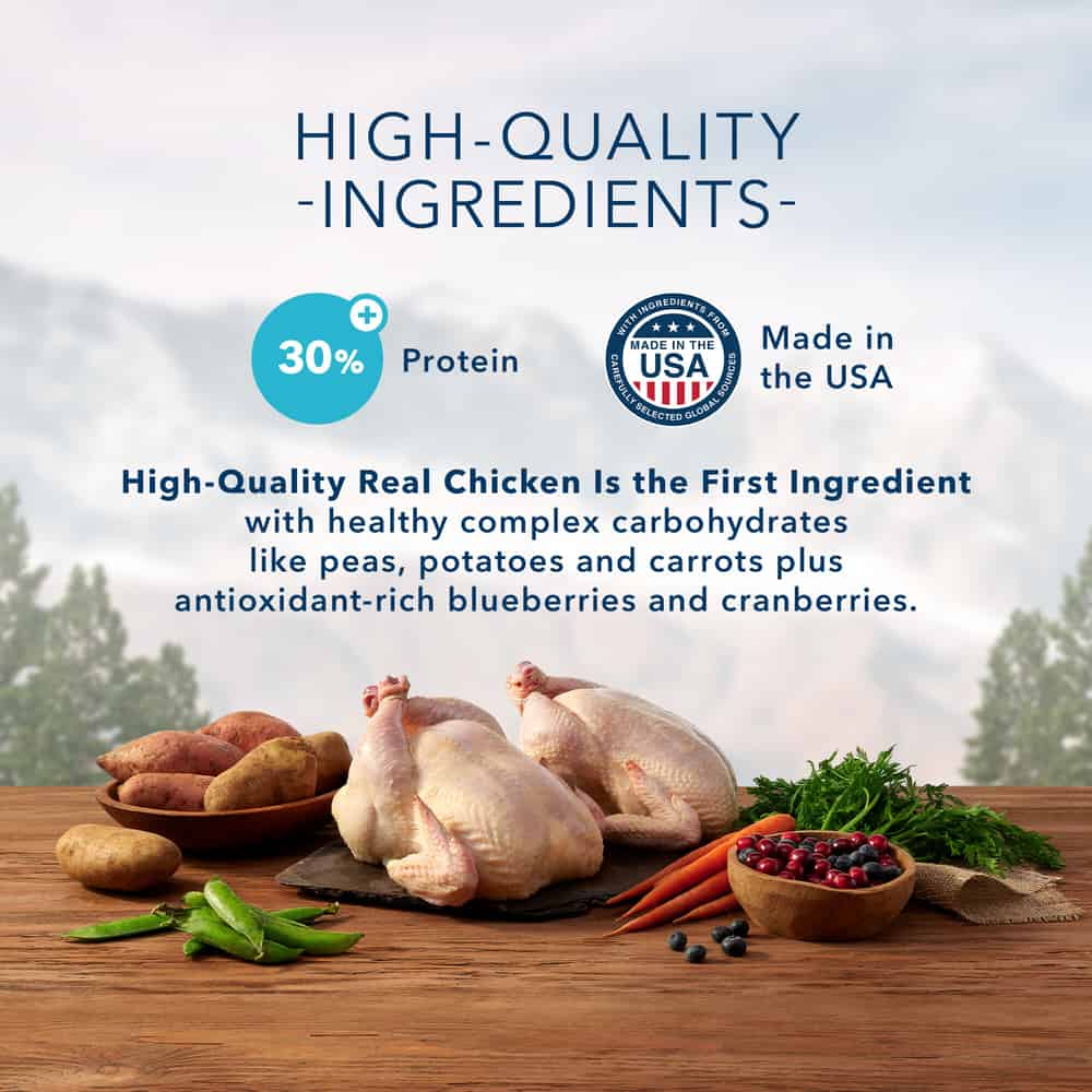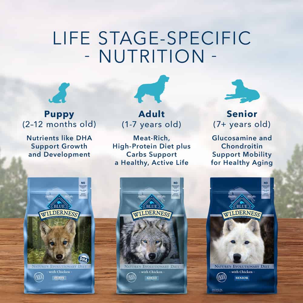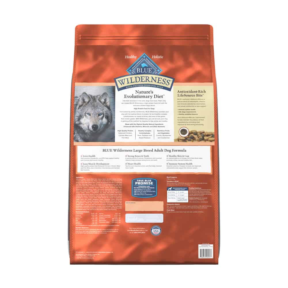 | Dietary Note | BLUE Wilderness Nature’s Evolutionary Diet with Chicken and LifeSource Bits for Large Breed Adult Dogs is formulated to meet the nutritional levels established by the AAFCO Dog Food Nutrient Profiles for maintenance. |