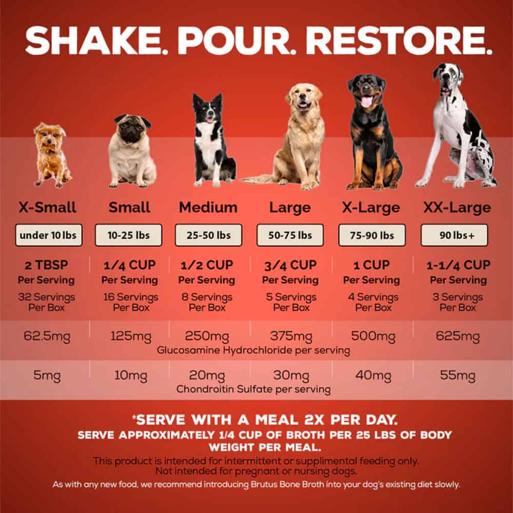 Brutus Bone Broth on the Go: Hip and Joint Instant Bone Broth Beef Dog Food Topper Dosage: