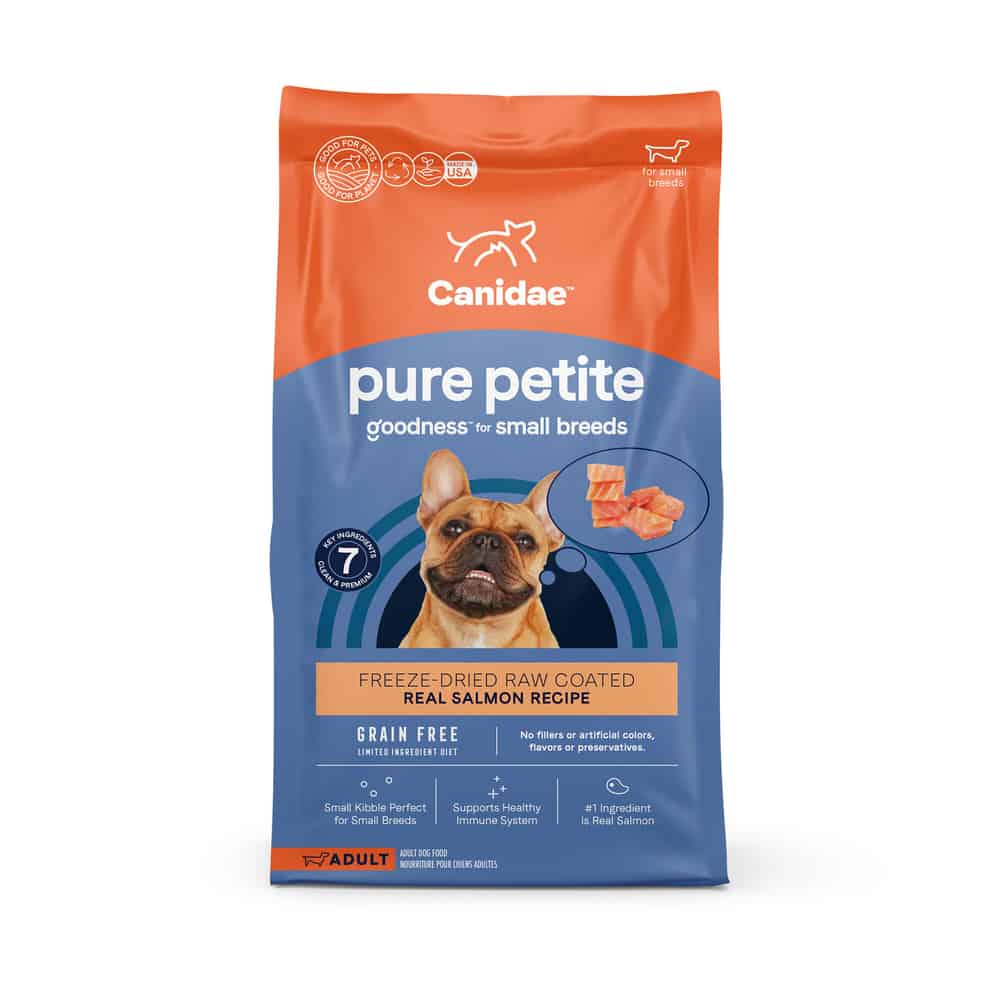CANIDAE PURE Petite Dry Dog Food: Grain Free Salmon Recipe for Small Breed Dogs is formulated to meet the nutritional levels established by the AAFCO Dog Food Nutrient Profiles for maintenance.
