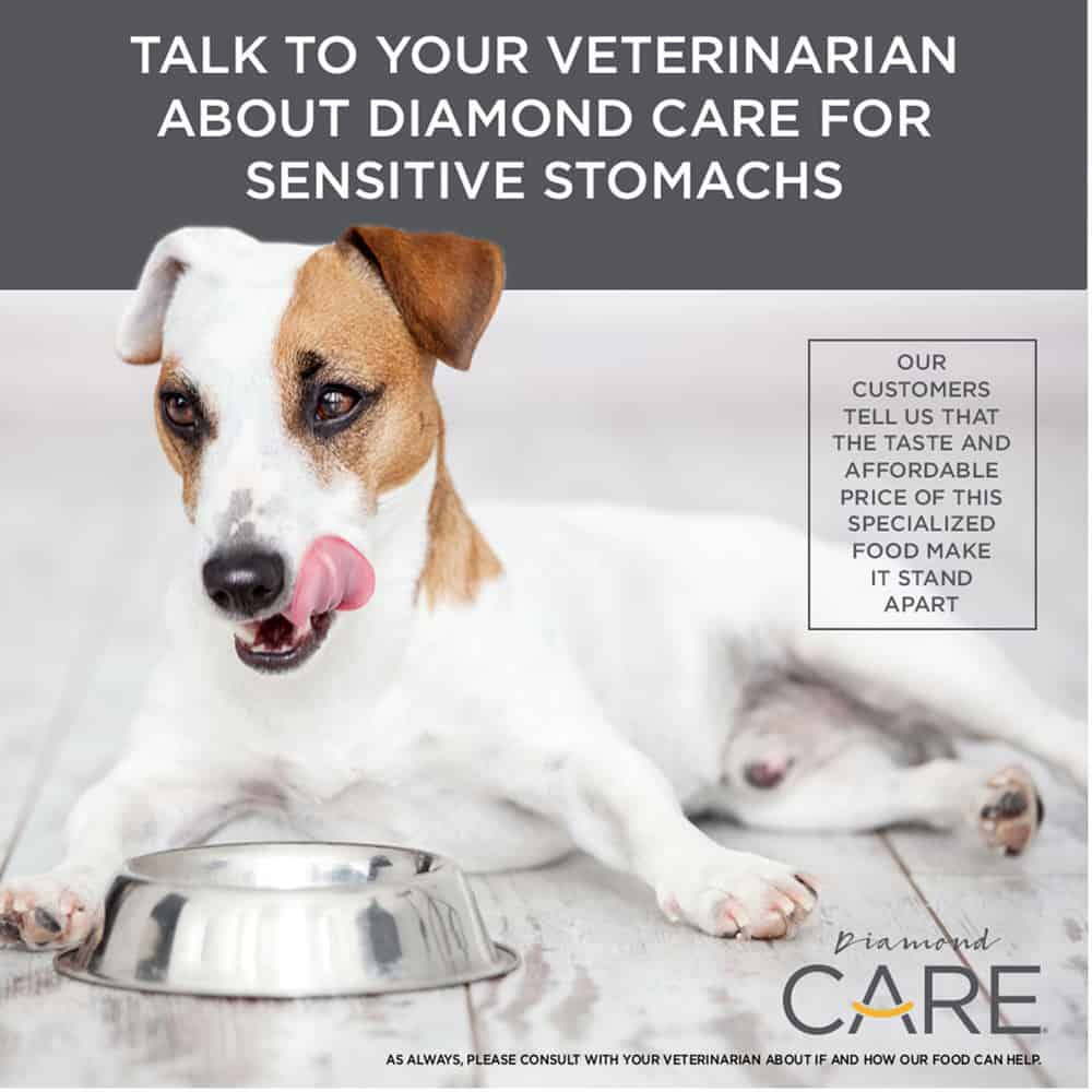 | Animal feeding tests using Association of American Feed Control Officials procedures substantiate that Diamond CARE Sensitive Stomach Formula for Adult Dogs provides complete and balanced nutrition for maintenance. |