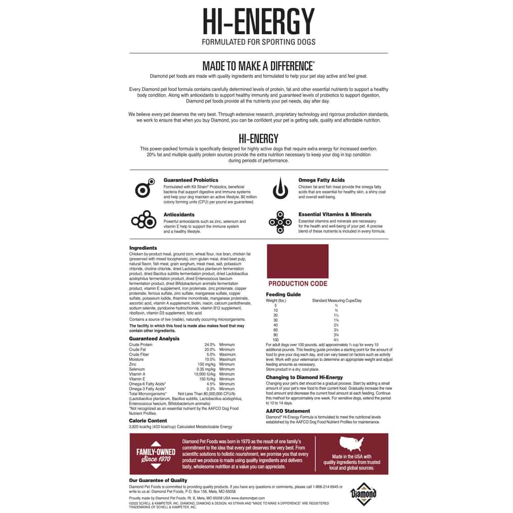 Diamond Hi-Energy Formula Dry Dog Food Directions: