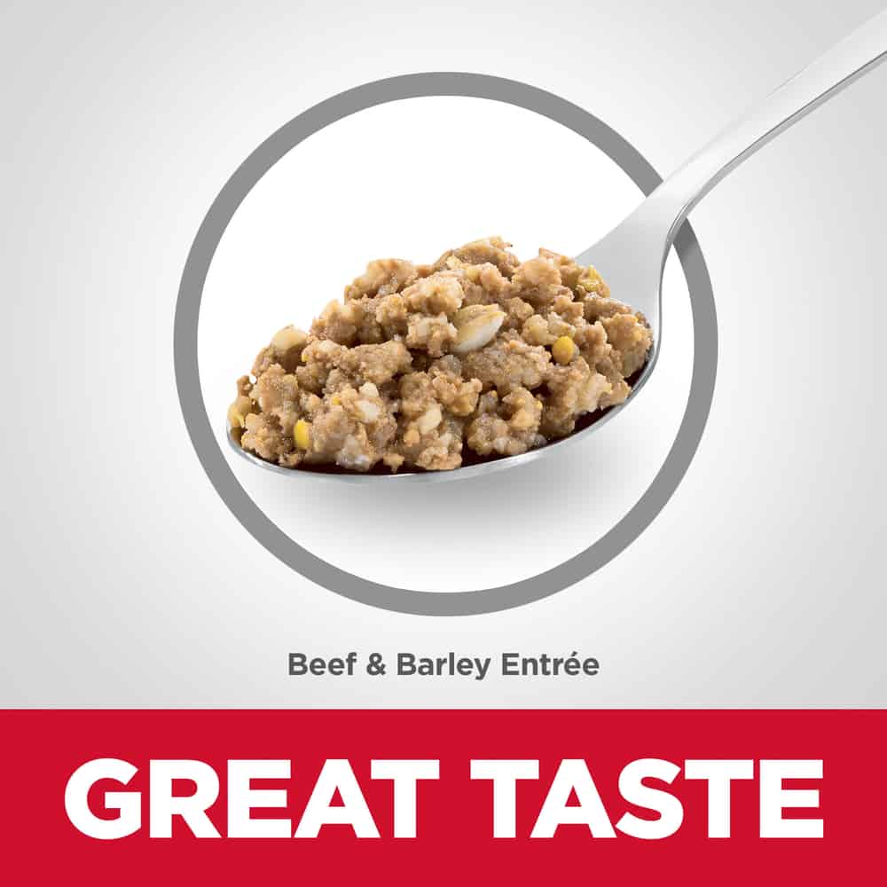 How does Hill's Science Diet Adult 7+ Beef & Barley Entrée Wet Dog Food work?