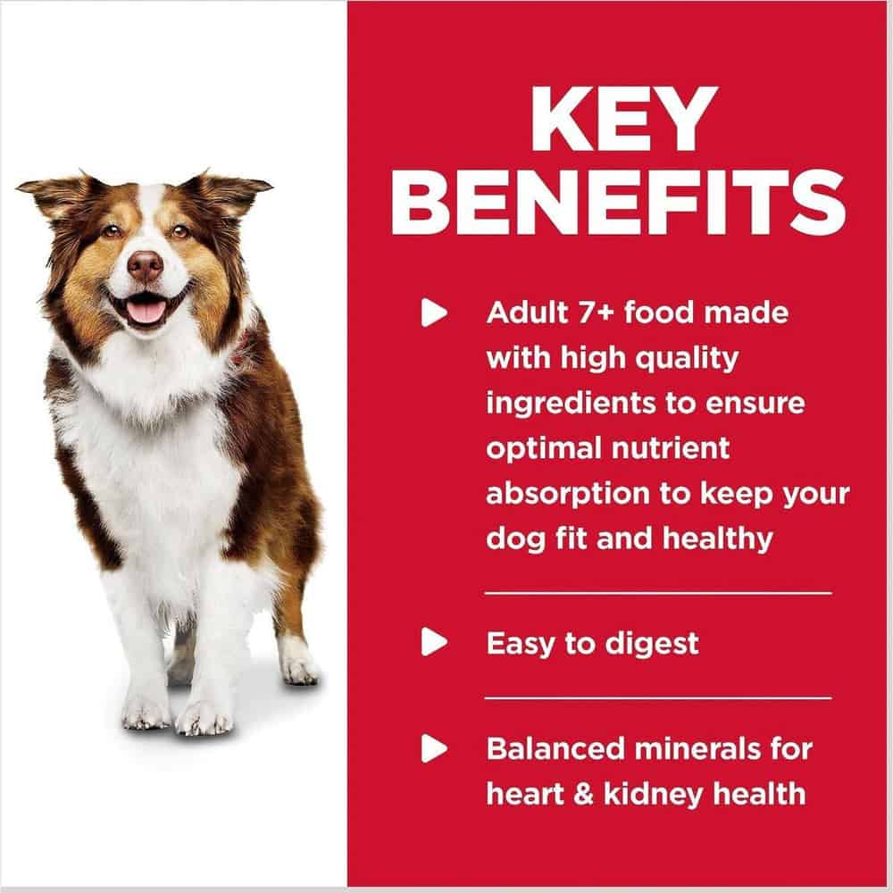Hill's Science Diet Adult 7+ Chicken & Barley Entrée dog food combines delicious ingredients with precise nutrition to support older dogs in energy and activity level.