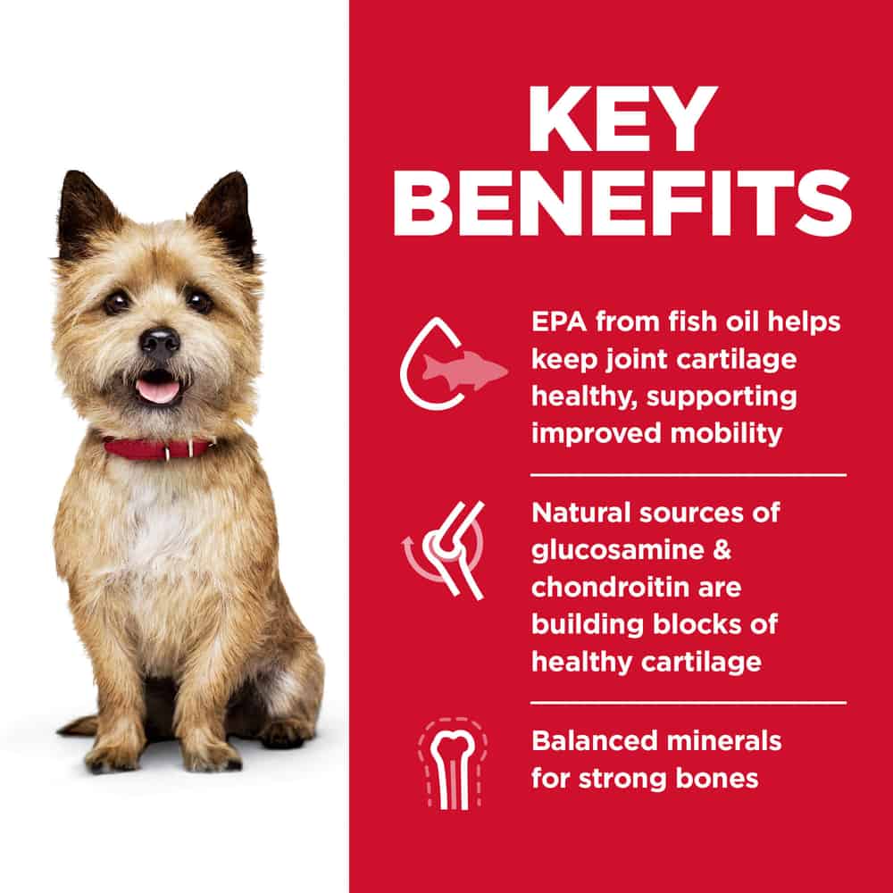 Hill's Science Diet Healthy Mobility Small Bites dry dog food contains advanced nutrition to support hip & joint health from day 1. A dog with a small frame rides on smaller joints, and keeping those joints and cartilage healthy and lithe is vital. This food is formulated specifically to care for those joints and keep your small breed dog running, jumping, and loving you.