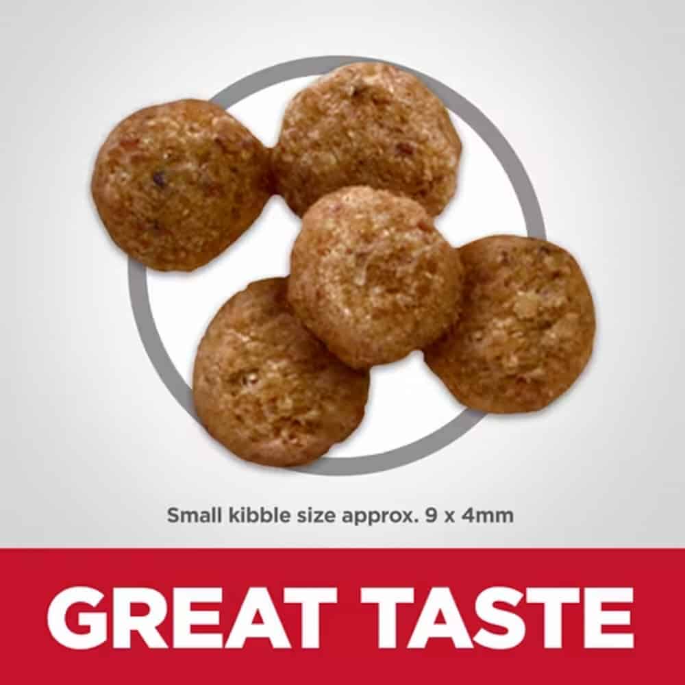 Not Recommended For: Puppies and pregnant or nursing dogs. During pregnancy or nursing, dogs should be switched to Hill’s Science Diet Puppy, Hill’s Science Diet Puppy Small Bites or Hill’s Science Diet Puppy Small & Mini dry dog food. To prevent suffocation, keep the packaging out of the reach of pets & children.
