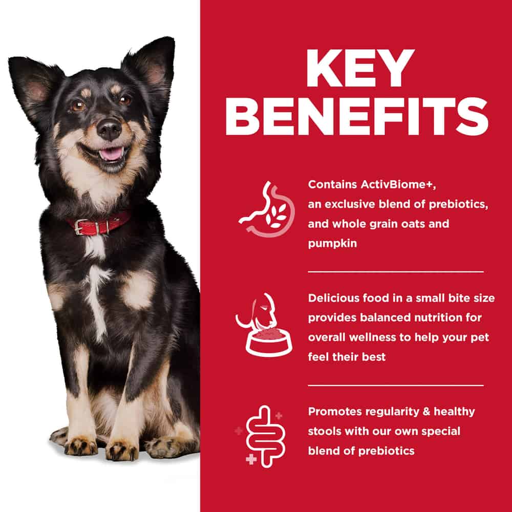 Prebiotics are nutrients that feed the billions of microbes in the gut microbiome that are essential for good health. Hills' breakthrough blend of prebiotics, ActivBiome+, supports each pet’s unique microbiome for healthy digestion & overall well-being. Your pet will love the delicious flavor of natural ingredients like chicken, whole oats, and brown rice, and they'll love how great they feel on this diet.