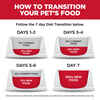 - New to this food? Mix increasing amounts of your pet's new food with decreasing amounts of the old food over a 7-day period.