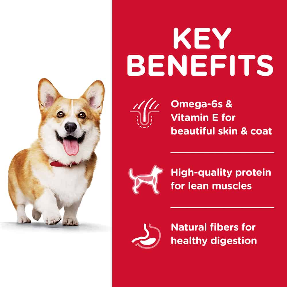 Hill's Science Diet Small Bites Adult dry dog food is specially formulated to fuel the energy needs of dogs during the prime of their life. I'ts made with delicious real lamb, for a flavor your dog will find irresistible, & made with high quality, easy-to-digest ingredients in a small bite size.