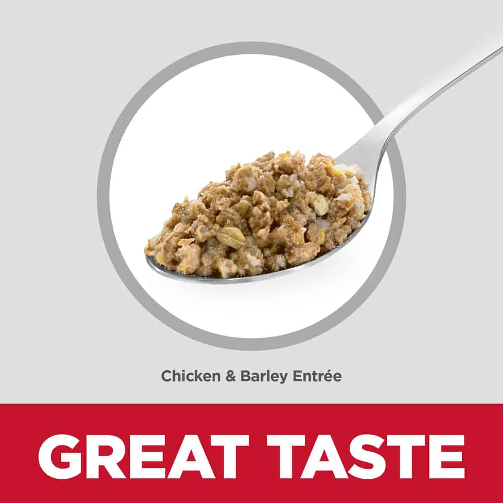 How does Hill's Science Diet Adult Small & Mini Breed Chicken & Barley Entrée Wet Dog Food work?