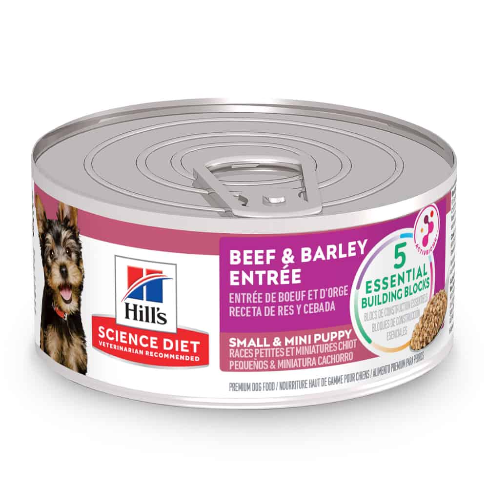 How does Hill's Science Diet Puppy Small & Mini Breed Beef & Barley Entrée Wet Dog Food work?