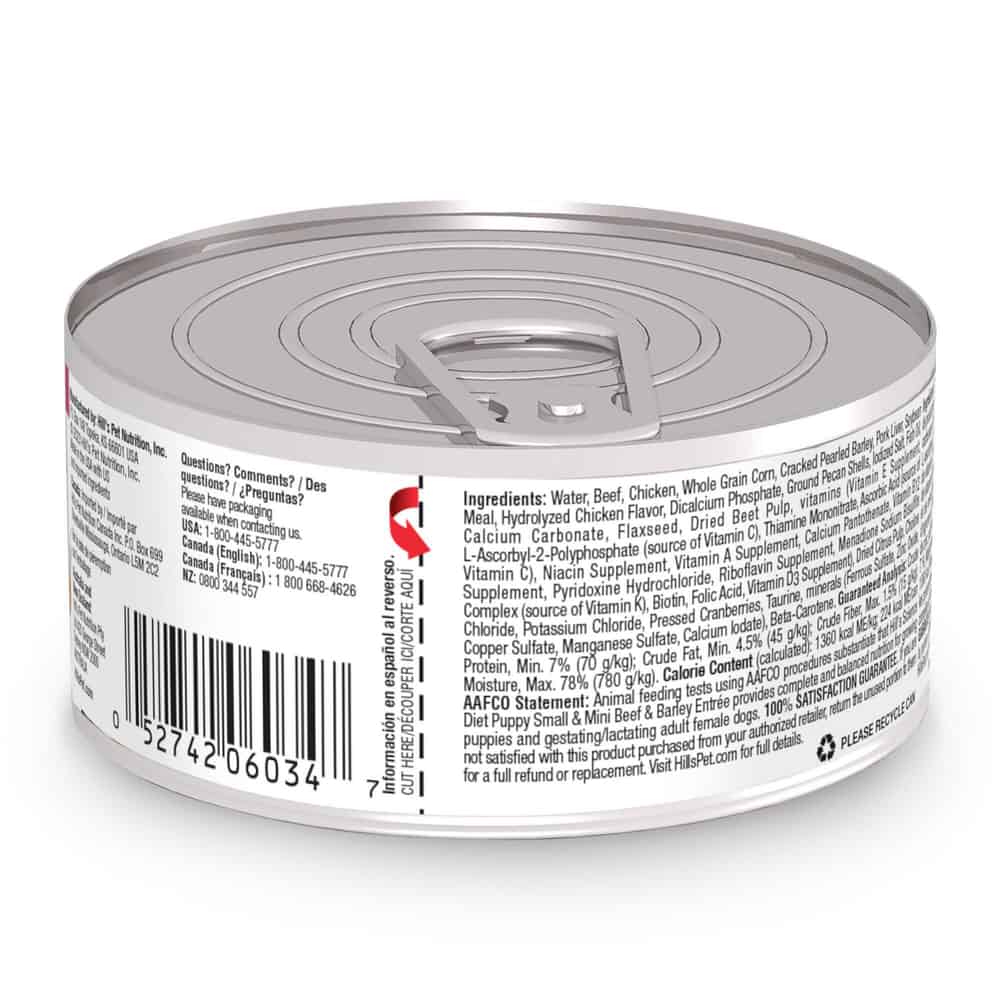 Hill's Science Diet Puppy Small & Mini Breed Beef & Barley Entrée Wet Dog Food Directions:
