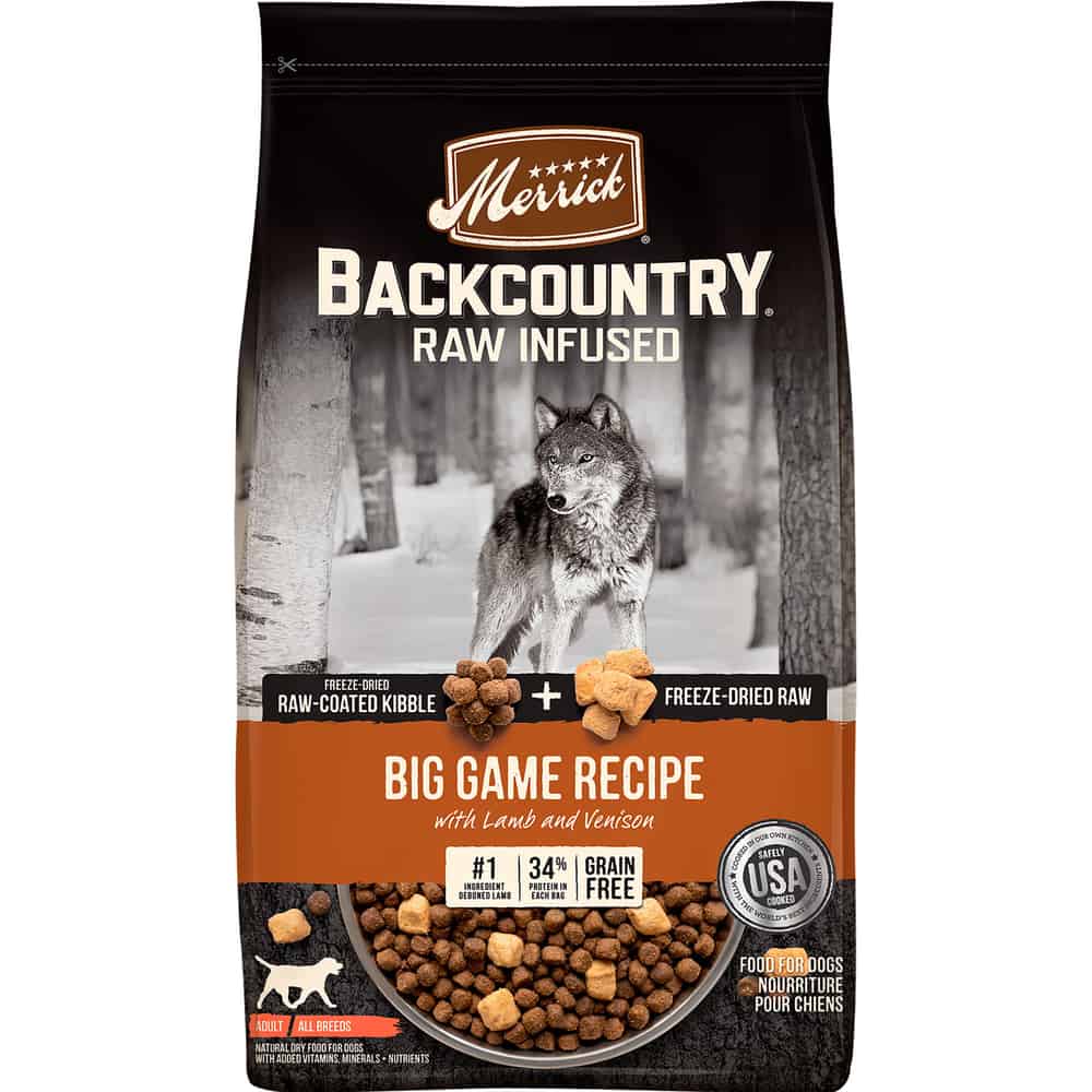 - Merrick Backcountry Raw Infused Grain Free Dog Food, Big Game Recipe, Freeze Dried Dog Food