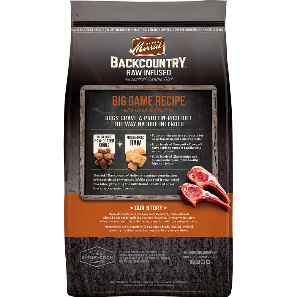 - Merrick Backcountry Raw Infused Grain Free Dog Food, Big Game Recipe, Freeze Dried Dog Food
