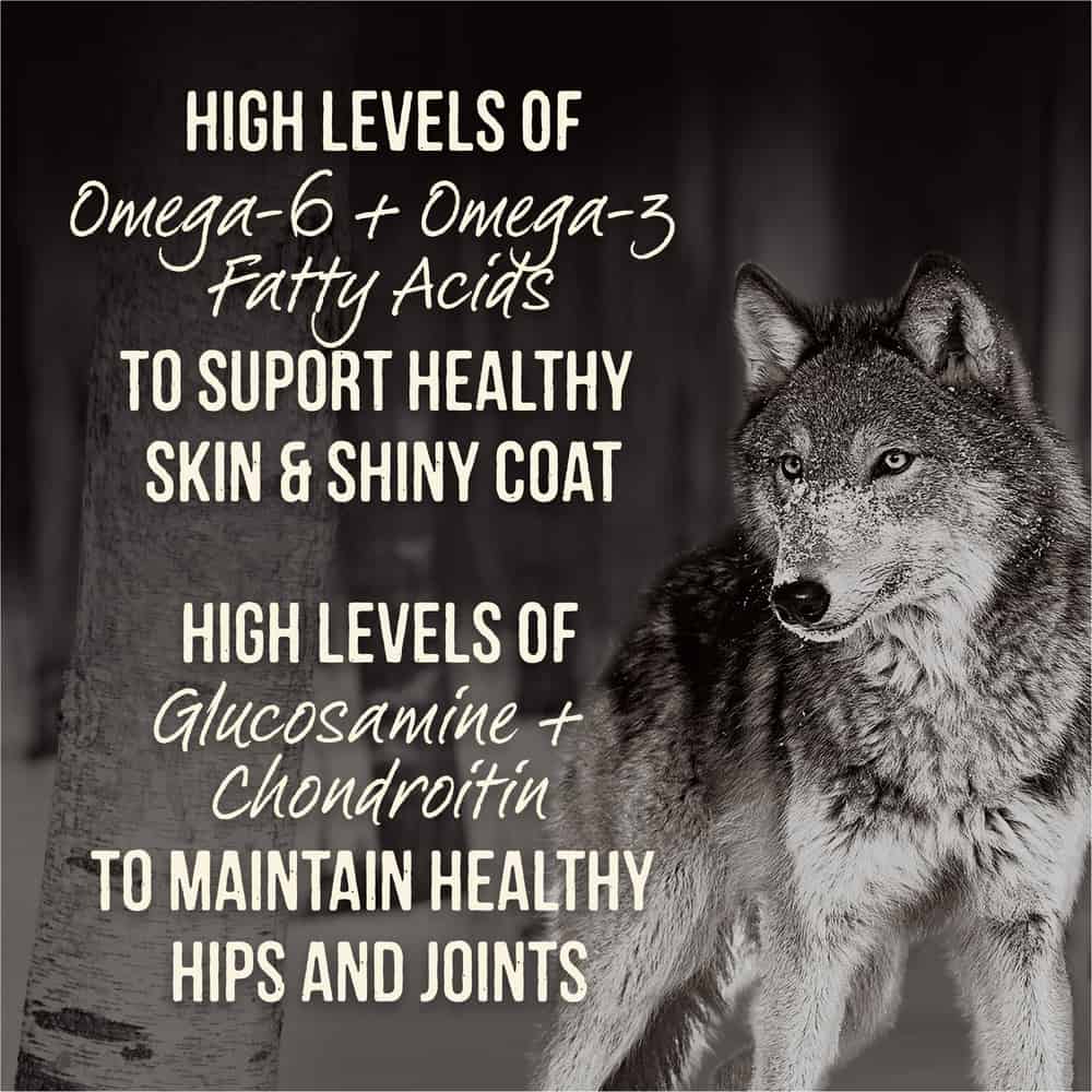 • This grain free dry dog food with freeze dried raw dog food bites is crafted with omega fatty acids for healthy skin and coat, and glucosamine and chondroitin for healthy hips and joints