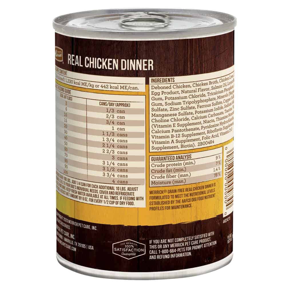 Merrick Grain Free 96% Real Chicken Canned Dog Food Directions: