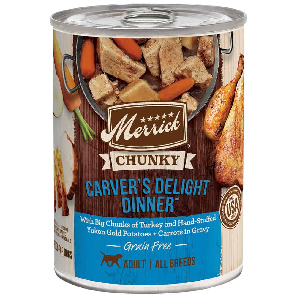- Merrick Chunky Grain Free Wet Dog Food, Carvers Delight Dinner Canned Dog Food