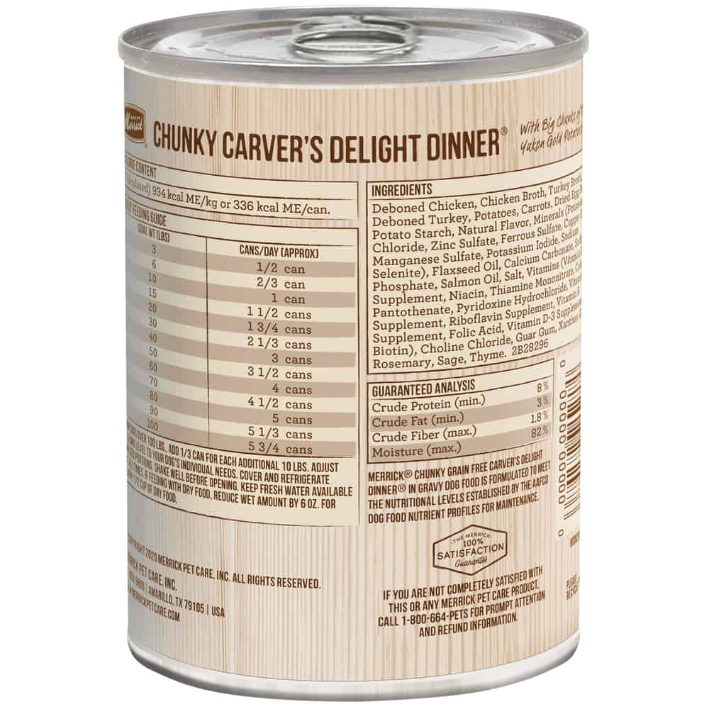 Merrick Grain Free Chunky Carvers Delight Dinner Canned Dog Food Directions: