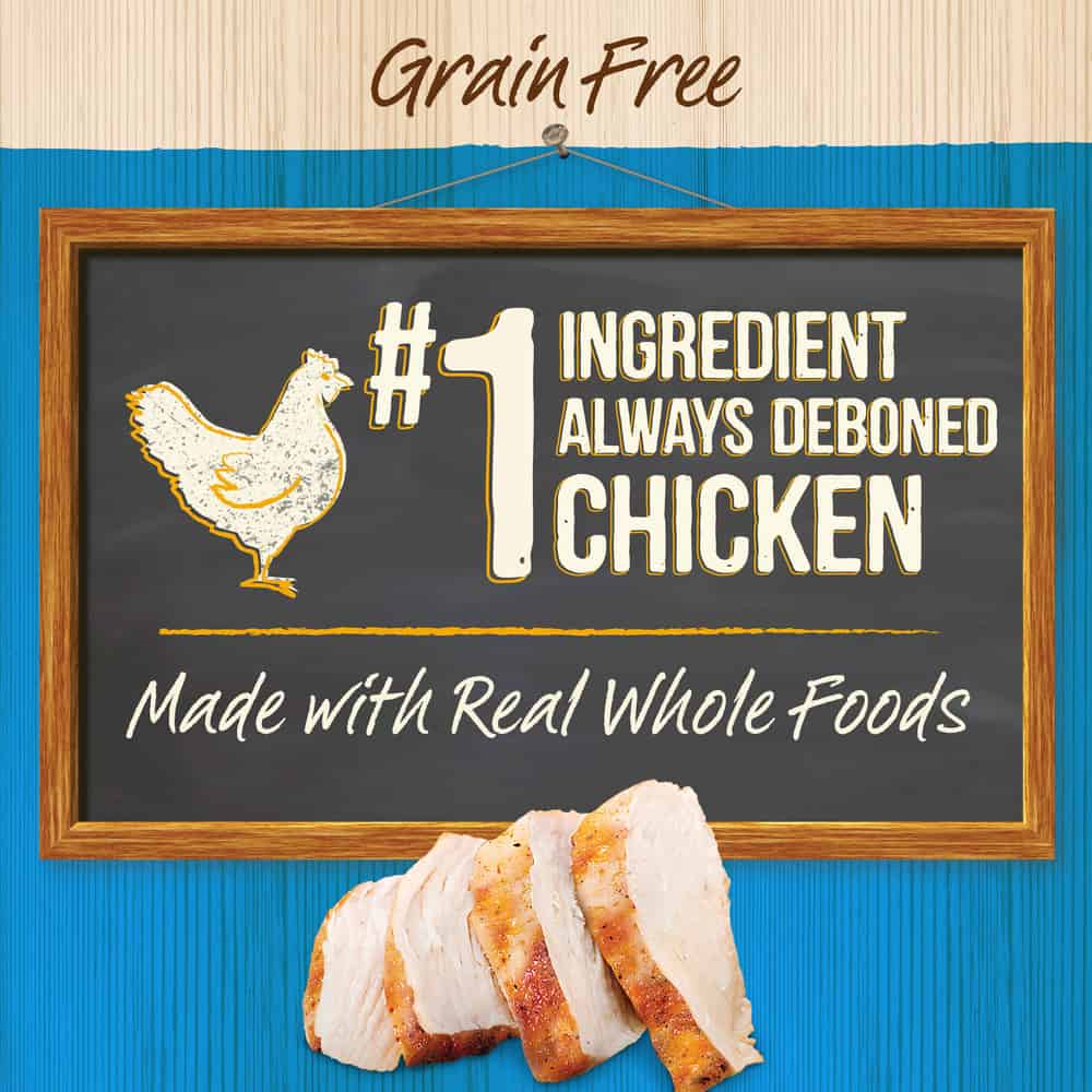 - Real, wholesome USDA-inspected deboned chicken is always the first ingredient in this grain free dog food recipe