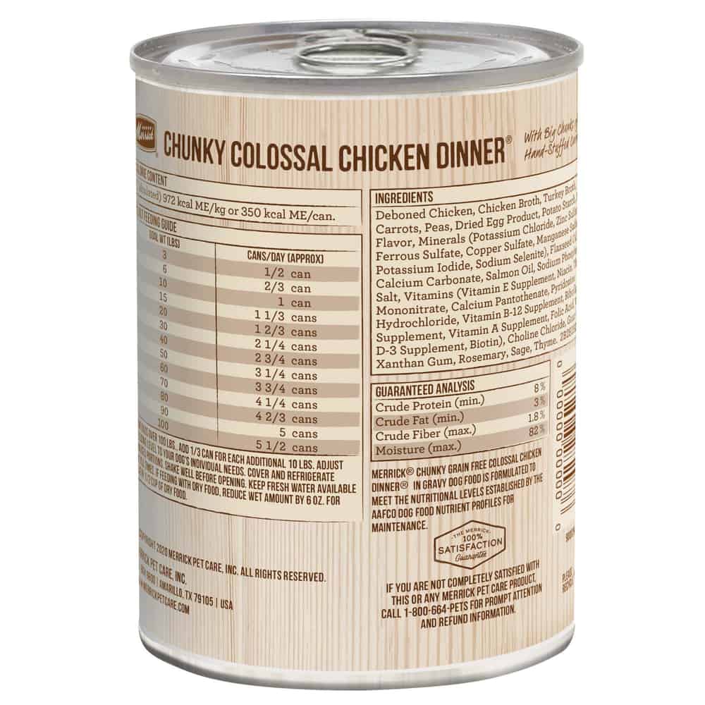 - Merrick Chunky Grain Free Wet Dog Food, Colossal Chicken Dinner Canned Dog Food