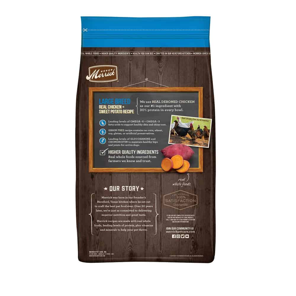 - Merrick Large Breed Dry Dog Food, Real Chicken and Sweet Potato Grain Free Dog Food Recipe