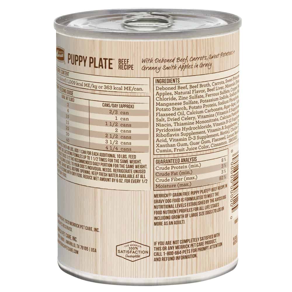 - Merrick Grain Free Wet Puppy Food Puppy Plate Beef Recipe