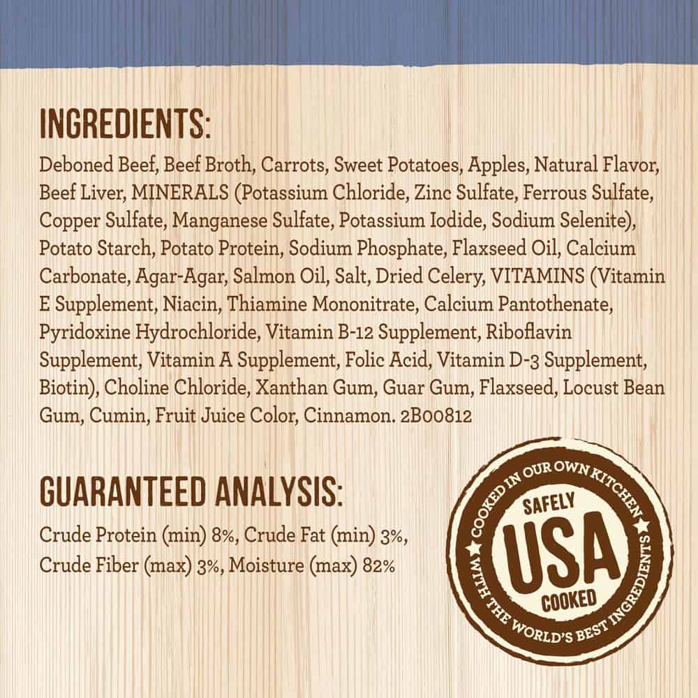 - Merrick grain free puppy food is made with real, deboned Texas beef for a hearty beef stew meal. Apples, sweet potatoes, and carrots in gravy give this beef dog food a savory flavor