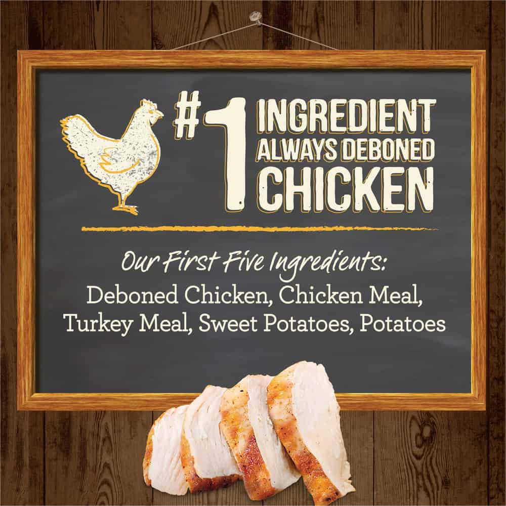 - Real deboned chicken is always the first ingredient in this natural dog food