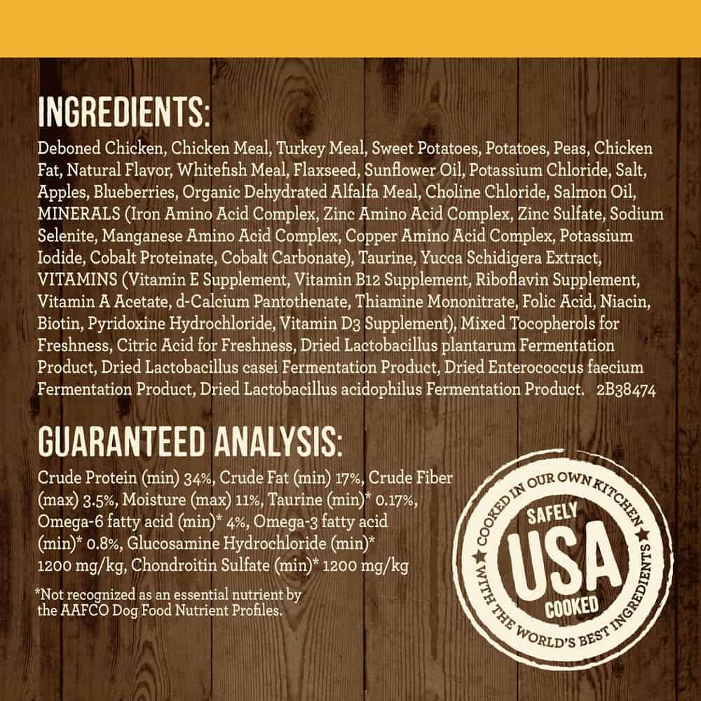 - Chicken dog food grain free recipe with 62% protein and healthy fat ingredients and 38% produce, fiber, vitamins, minerals and other natural ingredients