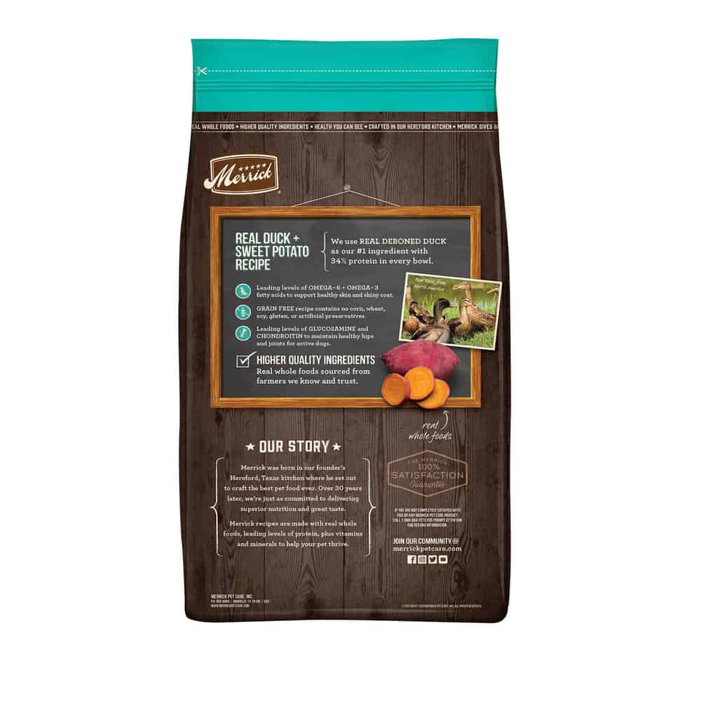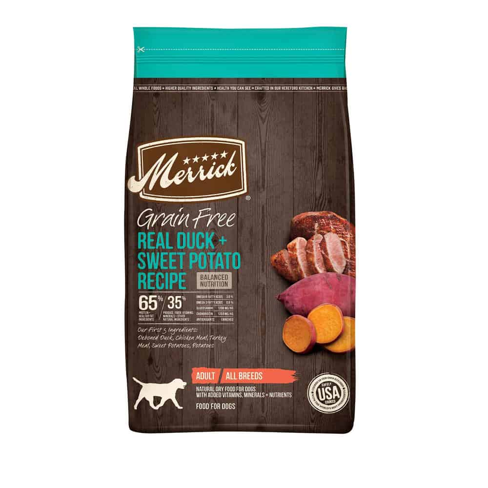 - Merrick Grain Free Dry Dog Food Real Duck and Sweet Potato Recipe