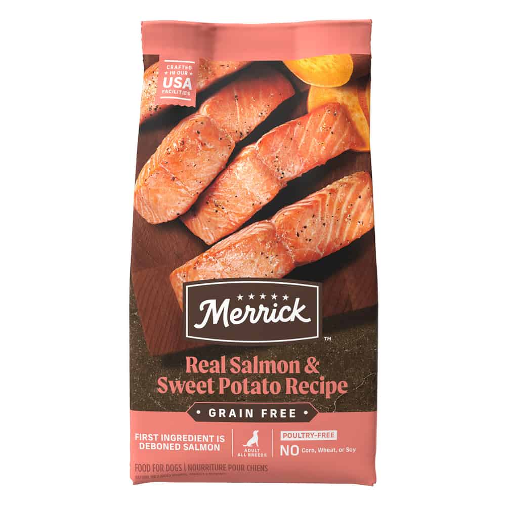 - Merrick Dry Dog Food, Real Salmon and Sweet Potato Grain Free Dog Food Recipe