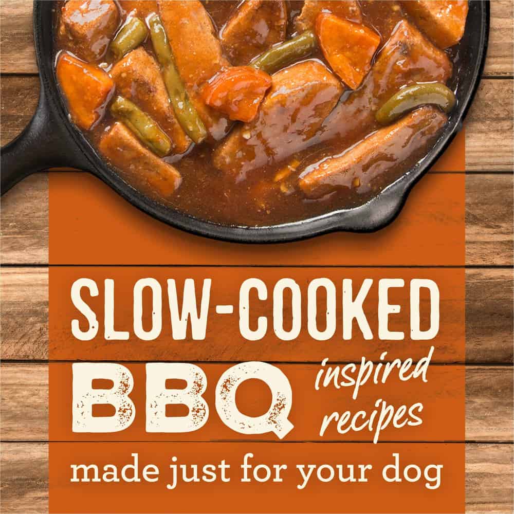 - The Slow-Cooked BBQ Texas Style recipe is a grain free wet dog food that features braised beef, sweet potatoes and green beans slow-cooked in a Texas style BBQ sauce