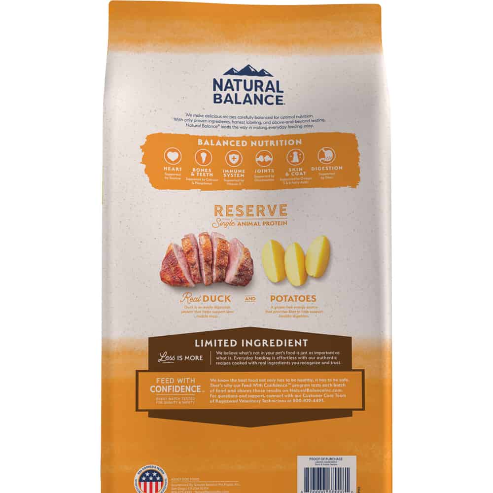 Natural Balance® Limited Ingredient Reserve Grain Free Duck & Potato Recipe Dry Dog Food Ingredients: