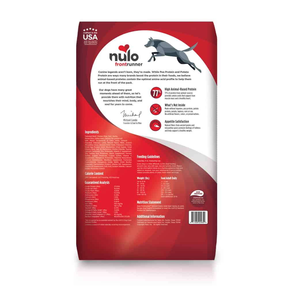 - BEEF, BARLEY, & LAMB RECIPE - Nulo Frontrunner All Breed Adult Dog Food with ancient-grains supports and maintains your pet's digestion and immune system with antioxidants and probiotics.