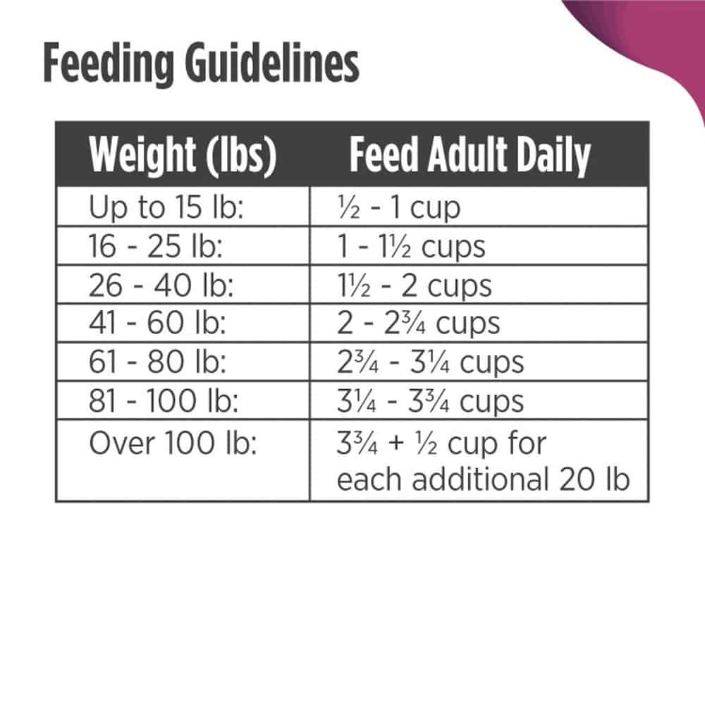 - Every dog is a little different, so the ideal feeding amount may vary with age, size and activity level.