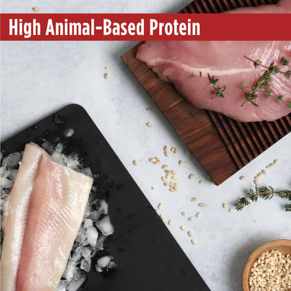 77% animal-based protein in this formula provides amino acids that support development of lean muscle mass and a healthy heart. This recipe is made without pea and potato protein powders, just real healthy animal protein. Omega-3 and omega-6 fatty acids promote a shiny coat and healthy skin, and it includes probiotics for digestive and immune system health.