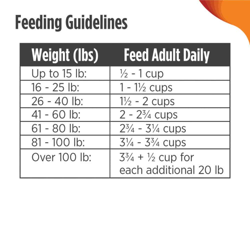 - Every dog is a little different, so the ideal feeding amount may vary with age, size and activity level.