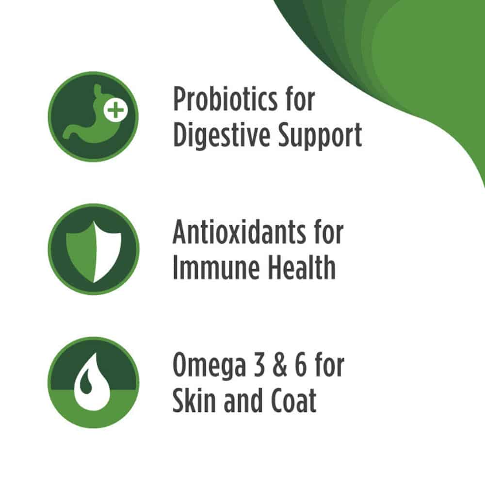 77% animal-based protein in this formula provides amino acids that support development of lean muscle mass and a healthy heart. This recipe is made without pea and potato protein powders, just real healthy animal protein. Omega-3 and omega-6 fatty acids promote a shiny coat and healthy skin, and it includes probiotics for digestive and immune system health.