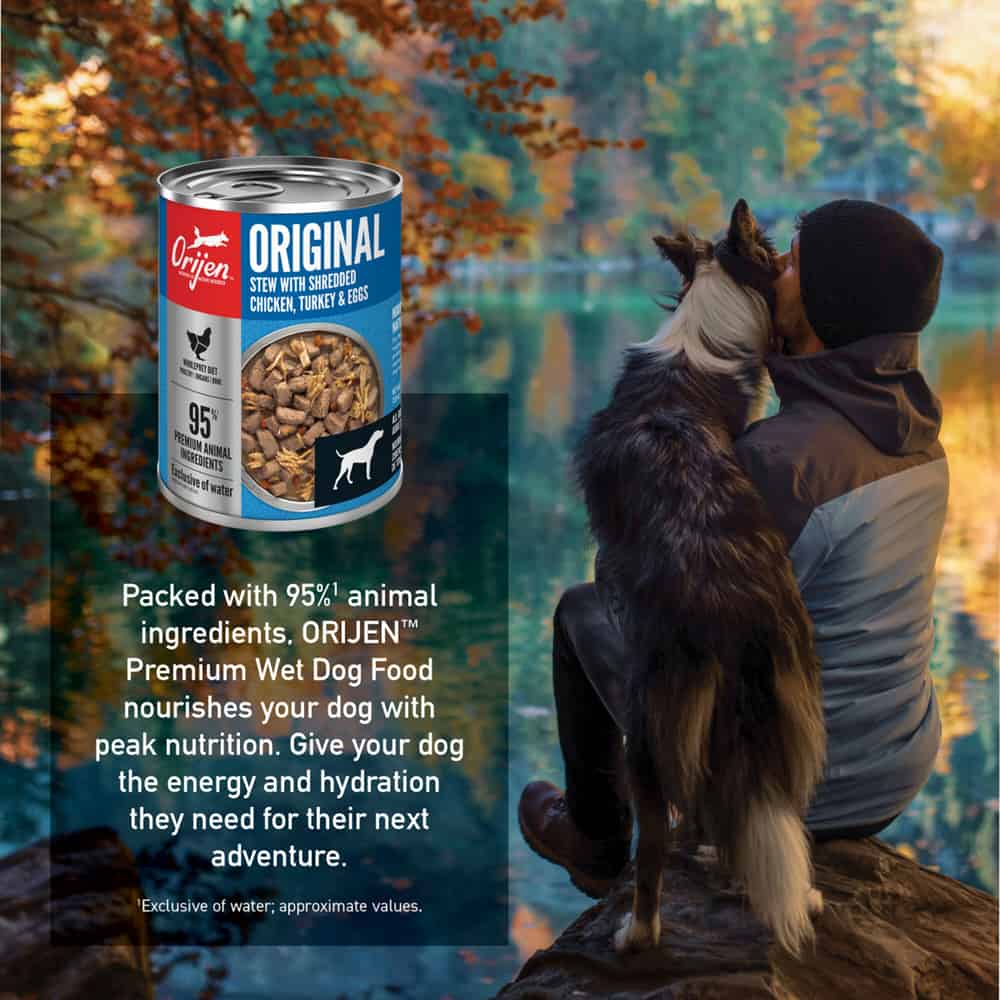 - ORIJEN wet dog food is tailored to help your dog thrive with a high moisture content to keep your canine hydrated