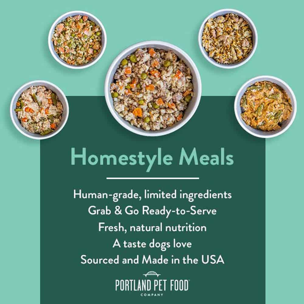 Portland Pet Food Company Homestyle Dog Meals are made with fresh, nutrient-packed vegetables - great for picky dogs, elder dogs, or dogs leading a busy lifestyle.
