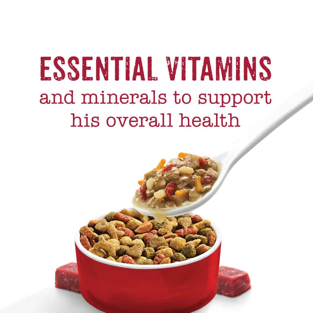 This delicious recipe not only bursts with the flavor your dog craves but also provides 100 percent complete and balanced nutrition for adult dogs, including 23 essential vitamins and nutrients, showing them you care about the food you serve them at mealtime by considering the support of his overall health and well-being. Purina knows you are concerned about what goes into your dog's food, which is why this wet dog food is made without artificial colors, flavors, or preservatives.