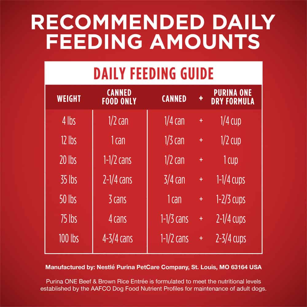 - Purina ONE Beef & Brown Rice Wet Dog Food Feeding Guide