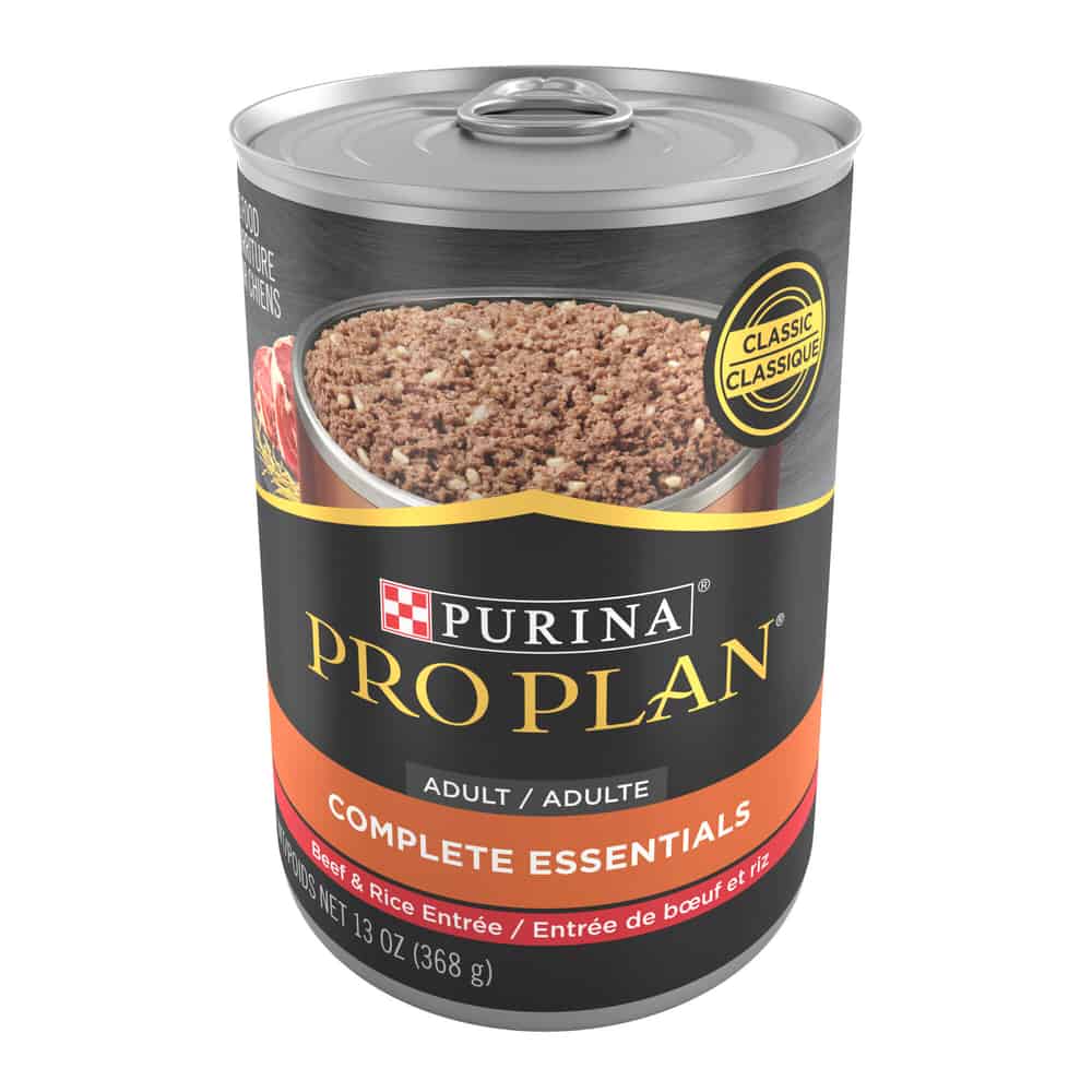 Delight your dog at feeding time when you offer up Purina Pro Plan Complete Essentials Beef and Rice Entree Classic adult wet dog food. This super-premium wet dog food features real beef as the first ingredient for a taste dogs love and no artificial colors, flavors or preservatives. Provide your canine companion with outstanding nutrition and exceptional taste when you make this Purina Pro Plan Complete Essentials wet pate dog food part of the daily feeding routine. Show them just how important they are to you with each mouthwatering bite. Purina proudly manufactures this Purina Pro Plan beef and rice canned ground dog food formula at Purina-owned U.S. facilities.