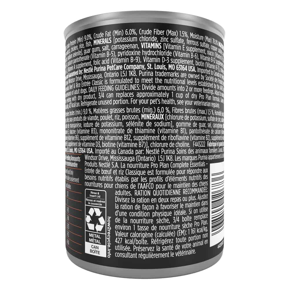 Purina Pro Plan Adult Complete Essentials Beef & Rice Entree Classic Wet Dog Food Directions: