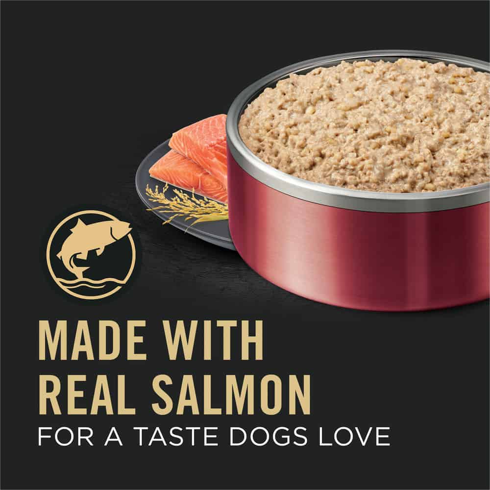Purina makes this nutrient-rich dog food pate with real salmon along with easily digestible rice that's gentle on your dogs stomach. They include linoleic acid, an omega fatty acid, in the dog food for sensitive stomachs to help support your dogs healthy skin and coat, and a high protein level helps maintain lean muscle. Plus, natural prebiotic fiber in the sensitive stomach dog food promotes digestive health. Highly digestible, it supports optimal nutrient delivery and has no artificial colors, flavors or preservatives. This adult dog food provides 23 essential vitamins and minerals and is 100 percent complete and balanced.