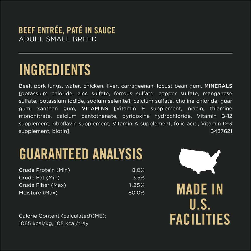 Purina Pro Plan Adult Small Breed Beef Entree Pate Wet Dog Food Ingredients: