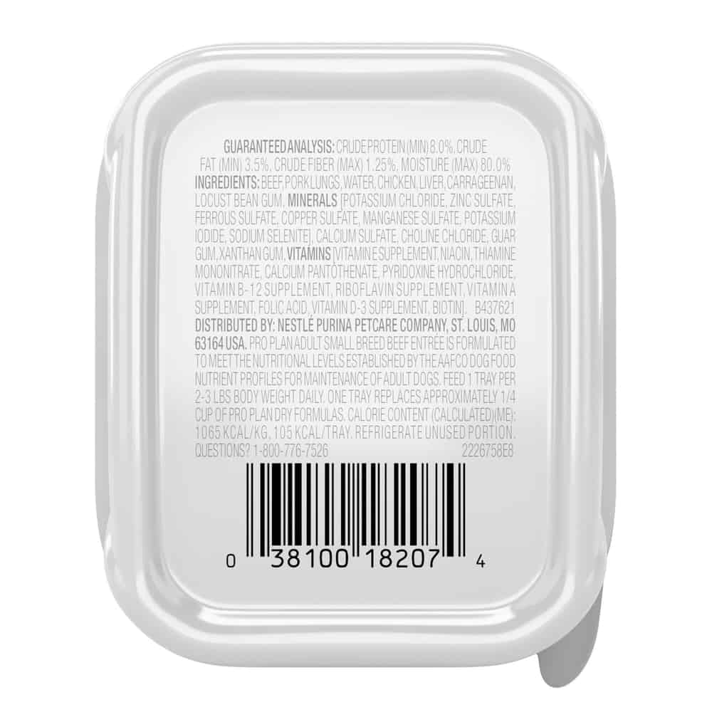Purina Pro Plan Adult Small Breed Beef Entree Pate Wet Dog Food Ingredients: