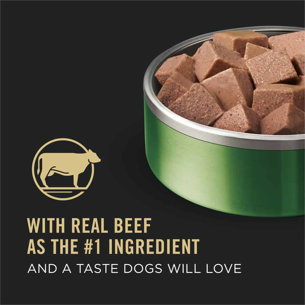Offer your small breed dog specialized nutrition for their little body with Purina Pro Plan Beef Entree Small Breed Wet Dog Food. Since small dogs have a higher metabolism and different nutritional needs than larger dogs, this Pro Plan small breed dog food is thoughtfully created with those needs in mind. Made without corn, wheat or soy, this grain free wet dog food small breed recipe features carefully considered ingredients, each with a specific functional or nutritional purpose.